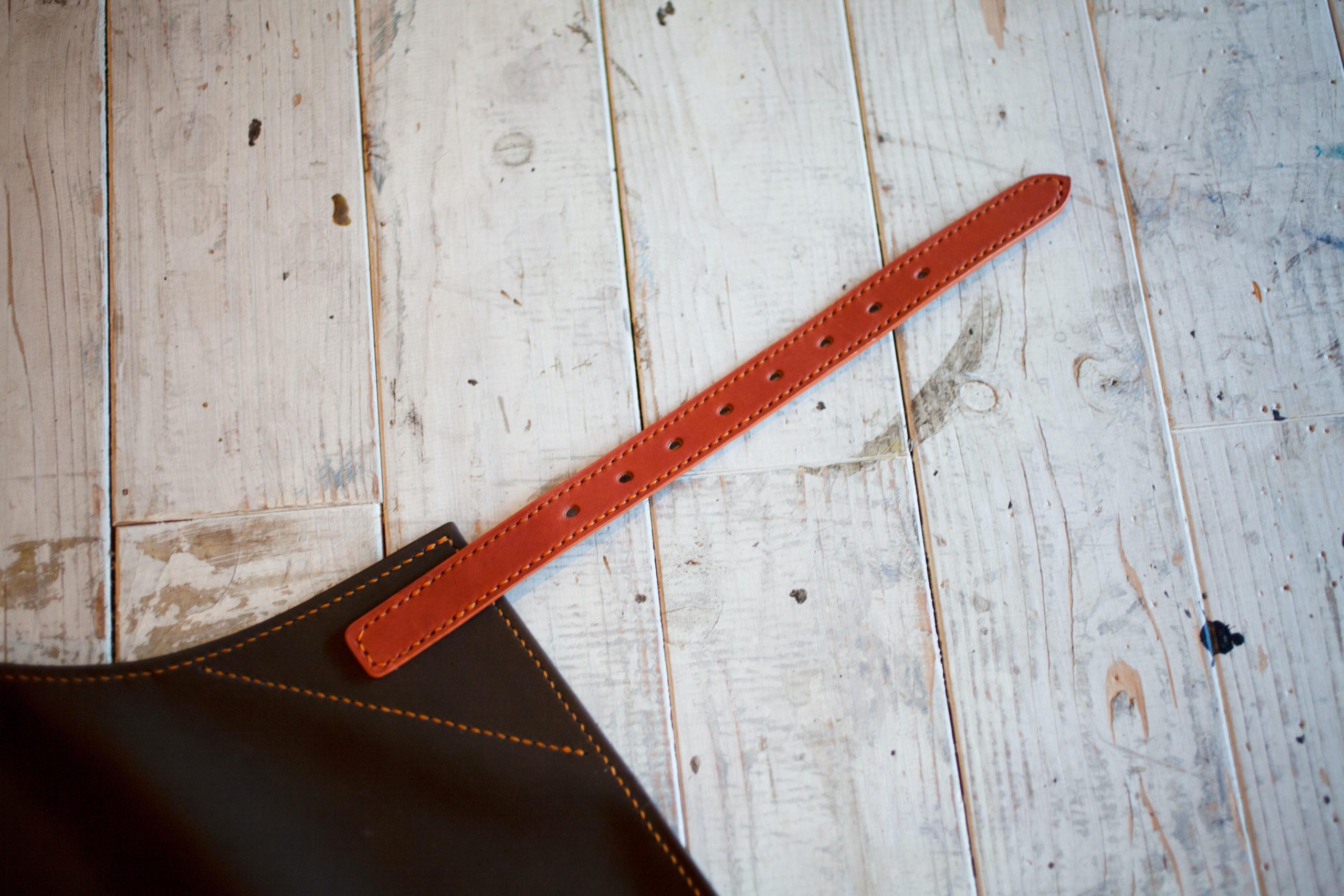 エプロン本体は手洗いできる加工を施した革を使用しています。